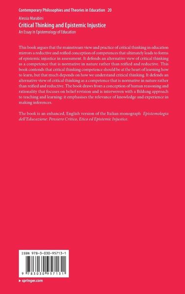 The book is an enhanced, English version of the Italian monograph Epistemologia dell'Educazione: Pensiero Critico, Etica ed Epistemic Injustice.
