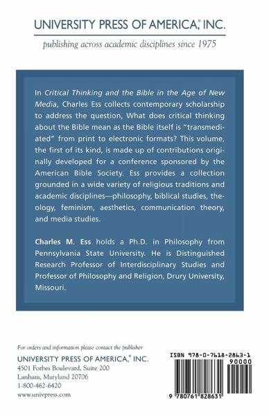 In Critical Thinking and the Bible in the Age of New Media, Charles Ess collects contemporary scholarship to address the question, what does critical thinking about the Bible mean as the Bible is 'transmediated' from print to electronic formats?