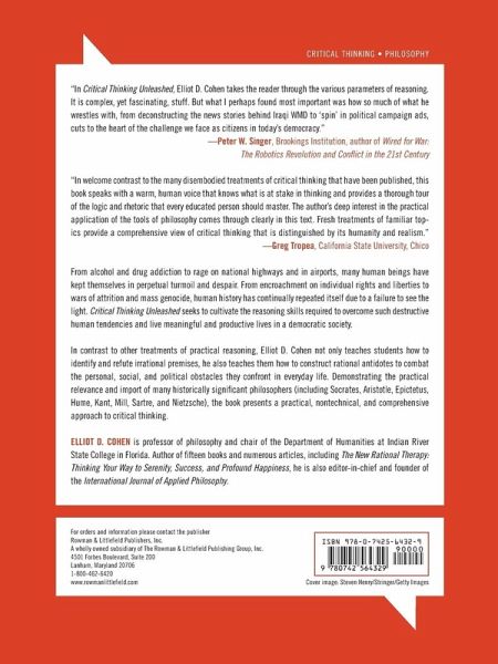 In Critical Thinking Unleashed, Elliot D. Cohen takes the reader through the various parameters of reasoning. It is complex, yet fascinating stuff. But what I found most important perhaps was how so much of what he wrestles with, from deconstructing the news stories behind Iraqi WMD to 'spin' in political campaign ads, cuts to the heart of the challenge we face as citizens in today's democracy. -- Peter W. Singer, Brookings Institution, author of Wired for War: The Robotics Revolution and Conflict in the 21st Century In welcome contrast to the many disembodied treatments of critical thinking that have been published, this book speaks with a warm, human voice that knows what is at stake in thinking and provides a thorough tour of the logic and rhetoric that every educated person should master. The author's deep interest in the practical application of the tools of philosophy comes through clearly in this text. Fresh treatments of familiar topics provide a comprehensive view of critical thinking that is distinguished by its humanity and realism. -- Greg Tropea, California State University, Chico