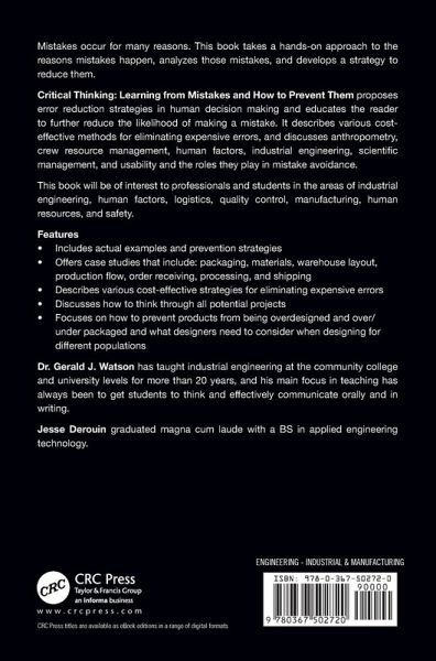 Errors happen for many reasons. This book takes a hands-on approach to the reasons why errors might happen and ways to possibly prevent them. The author covers errors committed by himself and colleagues in industry, academia, healthcare, and in government over the last 30 plus years.