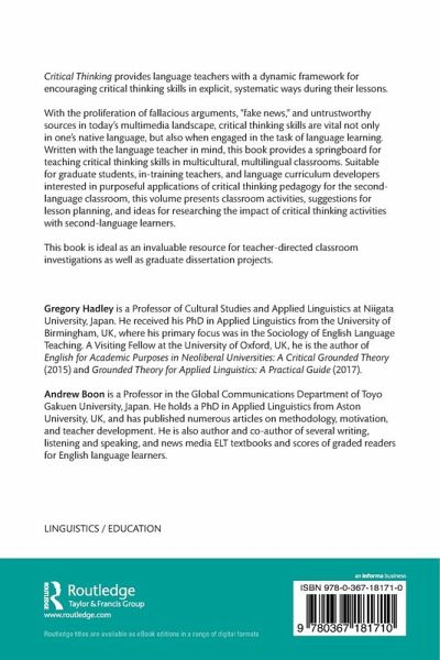 With the proliferation of fallacious arguments, "fake news," and untrustworthy sources in today's multimedia landscape, critical thinking skills are vital not only in one's native language, but also when engaged in the task of language learning. Written with the language teacher in mind, this book provides a springboard for teaching critical thinking skills in multicultural, multilingual classrooms. Suitable for graduate students, in-training teachers, and language curriculum developers interested in purposeful applications of critical thinking pedagogy for the second-language classroom, this volume presents classroom activities, suggestions for lesson planning, and ideas for researching the impact of critical thinking activities with second-language learners.