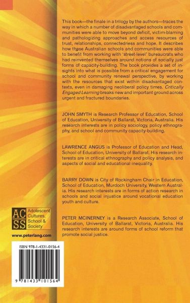 This book - the finale in a trilogy by the authors - traces the way in which a number of disadvantaged schools and communities were able to move beyond deficit, victim-blaming and pathologizing approaches and access resources of trust, relationships, connectedness and hope. It describes how these Australian schools and communities were able to benefit from working with 'street-level' bureaucrats who had reinvented themselves around notions of socially just forms of capacity-building. The book provides a set of insights into what is possible from a critical engagement for school and community renewal perspective, by working with the resources that exist within disadvantaged contexts, even in damaging neoliberal policy times. Critically Engaged Learning breaks new and important ground across urgent and fractured boundaries.