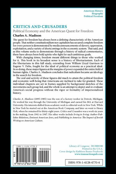 The quest for freedom has always been a defining characteristic of the American people. That neither constitutionalism nor capitalism has secured complete freedom for every person is demonstrated by media announcements of slavery, oppression, exploitation, and a variety of shortcomings in the economic system. That said, and as this volume seeks to demonstrate through a history of radical commentaries, there have always been bold spirits who fight for such ambitious heights. With changing times, freedom meant different things to those who worked for it. This book in its broadest sense is a history of libertarianism. Each of the libertarians in this full study, extending from William Lloyd Garrison to Eugene V. Debs, fought for the ideal of political economy as a practical ideal. In so doing these major figures at the margins of power expanded the entire field of human rights. Charles A. Madison concludes that radicalism became an ideology in the search for freedom. The zeal and activity of these figures did much to attain the political freedom and economic well- being that Americans are inclined to take for granted. These individual chapters are set in frames supplied by background sketches of the movements each group led, and the whole is an attempt to depict and re-evaluate America's social progress without the rigor or formality of impersonalised history.