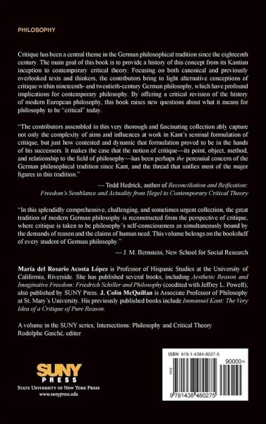 María del Rosario Acosta López is Professor of Hispanic Studies at the University of California, Riverside. She has published several books, including Aesthetic Reason and Imaginative Freedom: Friedrich Schiller and Philosophy (coedited with Jeffrey L. Powell), also published by SUNY Press. J. Colin McQuillan is Associate Professor of Philosophy at St. Mary's University. His previously published books include Immanuel Kant: The Very Idea of a Critique of Pure Reason.