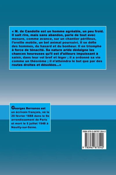 « M. de Candolle est un homme agréable, un peu froid. Il sait rire, mais sans abandon, parle de tout avec mesure, comme avance, sur un chantier périlleux, l’oreille mobile, un bel animal poursuivi. Il se défie des hommes, du hasard et du bonheur. Il en triomphe à force de ténacité. Sa nature aride dédaigne les chances heureuses qu’il est d’ailleurs impuissant à saisir, dans leur vol bref et léger ; il a ordonné sa vie comme un théorème ; il n’atteindra le but que par des routes droites et désolées…»