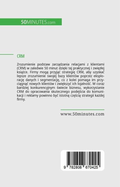 Zrozumienie podstaw zarz¿dzania relacjami z klientami (CRM) w zaledwie 50 minut dzi¿ki tej praktycznej i zwi¿z¿ej ksi¿¿ce. Firmy mog¿ przyj¿¿ strategi¿ CRM, aby uzyskä lepsze zrozumienie swojej bazy klientów poprzez eksploracj¿ danych i segmentacj¿, co z kolei pomaga im przyci¿gn¿¿ nowych klientów i zwi¿kszy¿ ich lojalno¿¿. W coraz bardziej konkurencyjnym ¿wiecie biznesu, wykorzystanie CRM do opracowania skutecznego podej¿cia do komunikacji i reklamy powinno by¿ istotn¿ cz¿¿ci¿ strategii kädej firmy. Ksi¿¿ka ta stanowi por¿czne wprowadzenie do zastosowä zarz¿dzania relacjami z klientami w pozyskiwaniu klientów, tworzeniu strategii marketingowych i optymalizacji obs¿ugi klienta. Zawiera tak¿e studia przypadków, omówienie wad narz¿dzia, w tym jego potencjalnych kosztów, oraz wprowadzenie do modeli pokrewnych, takich jak spo¿eczny CRM, zarz¿dzanie relacjami z dostawcami czy zarz¿dzanie relacjami z pracownikami.