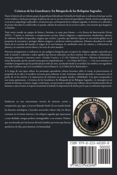 Embárcate en una emocionante travesía de misterio, acción y conspiración, que sigue a un joven llamado Smith. En un mundo donde las historias mitológicas y leyendas ancestrales cobran vida, los dioses coexisten en el mismo universo y las reliquias sagradas que representan a estas deidades otorgan poderes inimaginables a sus avatares. Poderes que son deseados por las fuerzas del mal, hombres perversos que buscan apoderarse de ellas, para dominar a la humanidad. Crónicas de los Guardianes: En Búsqueda de las Reliquias Sagradas. Narra la historia de un valiente grupo de guardianes liderado por la familia de Smith que se enfrenta al mal que acecha en las sombras y lucha por proteger al planeta de caer en un caos universal apocalíptico. Smith, nuestro protagonista, es un joven arqueólogo, explorador y aventurero que, en búsqueda de las reliquias sagradas, su destino se ve alterado y de pronto descubre la verdad sobre su pasado, además de enterarse de un secreto oculto y una traición que desgarró a su familiar. Todo inicia cuando un equipo de héroes y heroínas, se unen para formar —«La Fuerza de Intervención Divina (FID)». Y juntos se enfrentan a conspiraciones secretas, líderes religiosos y organizaciones clandestinas; además, de enfrentar desafíos inesperados, enigmas que resolver y pruebas que deberán superar en una misión global con el propósito de encontrar y proteger objetos antiguos y artefactos místicos poderosos. Mientras descubren la verdad detrás de la creación del mundo, el origen de la raza humana, las similitudes entre las culturas y civilizaciones de planeta y su conexión con los dioses y los seres de otros mundos. Nuestros protagonistas se embarcan en una peligrosa búsqueda para recuperar las reliquias sagradas esparcidas por todo el mundo y enfrentar a todos aquellos que buscan utilizarlas con fines nefastos. En su misión se enfrentarán a enemigos poderosos y siniestros como «Xander Cassius» y el «Dr. Nathaniel Ashton». Mientras desentrañan la trama del pasado, que ha causado tantas guerras impulsadas por — «La Orden del Caos» —. A lo largo de esta épica odisea, los personajes aprenderán valiosas lecciones sobre el coraje, la perseverancia, el propósito de la vida y el sacrificio necesario para enfrentar el mal. Asimismo, deberán aprender a conectarse con el poder de su luz interior y la importancia de enfrentar sus propios miedos y debilidades. Con giros inesperados y una trama apasionante, «Crónicas de los Guardianes: En Búsqueda de las Reliquias Sagradas» te sumergirá en un mundo de fantasía, aventura, magia y misticismo, con personajes complejos que reflejan valores fundamentales del ser humano, como el amor, el respeto, la amistad, la lealtad y la importancia de luchar por lo que es realmente importante. Inspirado en mitologías antiguas, este universo lleno de misterio, drama, acción y teorías de conspiración te llevará por un camino lleno de peligros y emocionantes desafíos. Descubre la verdad detrás de la creación de los primeros humanos y su conexión con deidades y seres provenientes de otras partes del cosmos. Y sé testigo de una batalla épica entre deidades místicas y avatares cósmicos que definirá el destino de la humanidad, en una lucha por la justicia y la verdad de nuestra existencia, que, finalmente, ser&aacu