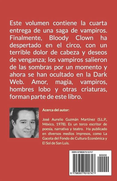 Este volumen contiene la CUARTA ENTREGA de una saga de vampiros. Finalmente, Bloody Clown ha despertado en el circo, con un terrible dolor de cabeza y deseos de venganza; los vampiros salieron de las sombras por un momento y ahora se han ocultado en la Dark Web. Amor, magia, vampiros, hombres lobo y otras criaturas, forman parte de este libro. ¡Apoya a los escritores independientes, comentando y calificando sus obras! ¡Muchas gracias!