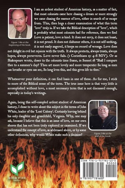 I am an ardent student of American history, as a matter of fact, that most colonists came here chasing a dream or more strongly we came chasing the essence of love, either in search of or escape from. This, then begs a closer examination of what this term "love" truly is. If we take the Biblical description of "love", which is probably what most colonists had for reference, then we find Love is patient, love is kind. It does not envy, it does not boast, it is not proud. It does not dishonor others, it is not self-seeking, it is not easily angered, it keeps no record of wrongs. Love does not delight in evil but rejoices with the truth. It always protects, always trusts, always hopes, always perseveres. Love never fails. (1 Corinthians 13: 4-8 NIV). Or as Shakespeare wrote, closer to the colonists time frame, in Sonnet 18 "Shall I compare thee to a summer's day? Thou art more lovely and more temperate: So long as men can breathe or eyes can see, So long lives this, and this gives life to thee." Whatsoever your definition, it can find basis in one of these. As for me, I stick to more of the Biblical sense of the term. The true issue here is that very little is accomplished without love, a most necessary term that is not discussed enough, especially in today's writings. I chose to write about this subject in the terms of John White, leader of the 'Lost Colony'. Certainly leaving behind his only daughter and grandchild, Virginia. Why, one may ask, because I believe that this is an issue of love, on our own shores that has not been truly explored or examined. If we understand the concept of love, as addressed above, or by some other definition, why would White make such a decision?