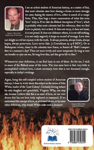 I am an ardent student of American history, as a matter of fact, that most colonists came here chasing a dream or more strongly we came chasing the essence of love, either in search of or escape from. This, then begs a closer examination of what this term "love" truly is. If we take the Biblical description of "love", which is probably what most colonists had for reference, then we find Love is patient, love is kind. It does not envy, it does not boast, it is not proud. It does not dishonor others, it is not self-seeking, it is not easily angered, it keeps no record of wrongs. Love does not delight in evil but rejoices with the truth. It always protects, always trusts, always hopes, always perseveres. Love never fails. (1 Corinthians 13: 4-8 NIV). Or as Shakespeare wrote, closer to the colonist's time frame, in Sonnet 18 "Shall I compare thee to a summer's day? Thou art more lovely and more temperate: So long as men can breathe or eyes can see, so long lives this, and this gives life to thee." Whatsoever your definition, it can find basis in one of these. As for me, I stick to more of the Biblical sense of the term. The true issue here is that very little is accomplished without love, a most necessary term that is not discussed enough, especially in today's writings. I chose to write about this subject in the terms of John White, leader of the 'Lost Colony'. Certainly, leaving behind his only daughter and grandchild, Virginia. Why, one may ask, because I believe that this is an issue of love, on our own shores that has not been truly explored or examined. If we understand the concept of love, as addressed above, or by some other definition, why would White make such a decision?