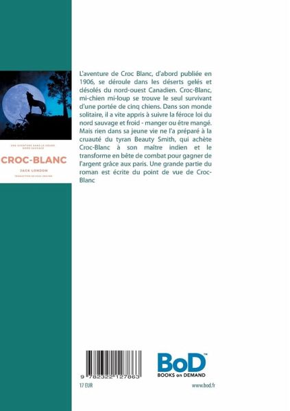 L'aventure de Croc Blanc, d'abord publiée en 1906, se déroule dans les déserts gelés et désolés du nord-ouest Canadien. Croc-Blanc, mi-chien mi-loup se trouve le seul survivant d'une portée de cinq chiens. Dans son monde solitaire, il a vite appris à suivre la féroce loi du nord sauvage et froid - manger ou être mangé. Mais rien dans sa jeune vie ne l'a préparé à la cruauté du tyran Beauty Smith, qui achète Croc-Blanc à son maître indien et le transforme en bête de combat pour gagner de l'argent grâce aux paris. Une grande partie du roman est écrite du point de vue de Croc-Blanc