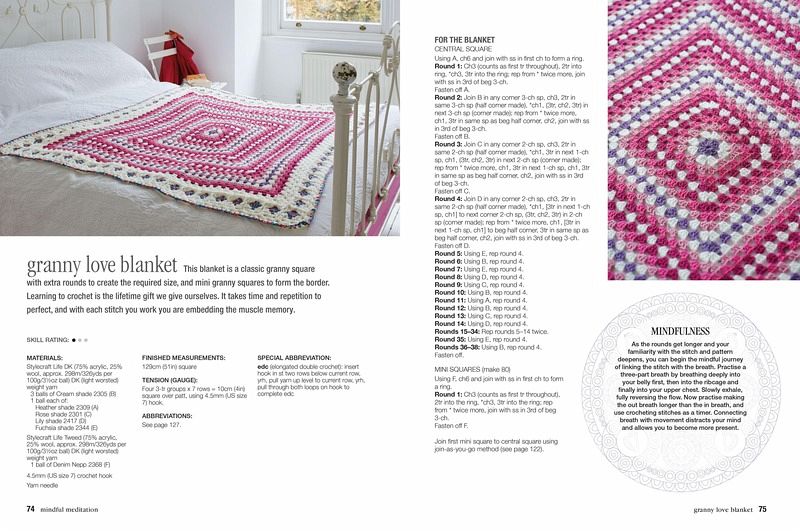 RELAX, REFOCUS AND UNWIND with Crochet for Mindfulness, featuring 35 patterns specially designed with SOOTHING REPETITION, COMPLEMENTARY COLOURS and PLEASANT TEXTURES in mind.