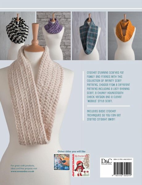 An on trend collection of 8 crochet infinity scarf patterns from 4 individual designers. Whether you are a beginner or a more experienced crocheter you will find the perfect patterns for you in this stylish collection. Includes a crochet techniques section to get you started straight away.