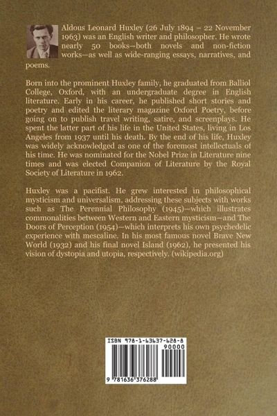 Aldous Leonard Huxley (1894 - 1963) was an English writer, novelist, philosopher and prominent member of the Huxley family. He graduated from Balliol College at the University of Oxford with a first class honours in English literature. The author of nearly fifty books, he was best known for his novels including Brave New World, set in a dystopian future; for non-fiction works, such as The Doors of Perception, which recalls experiences when taking a psychedelic drug; and a wide-ranging output of essays. Early in his career Huxley edited the magazine Oxford Poetry and published short stories and poetry. Mid career and later, he published travel writing, film stories and scripts. He spent the later part of his life in the United States, living in Los Angeles from 1937 until his death. In 1962, a year before his death, he was elected Companion of Literature by the Royal Society of Literature. Huxley was a humanist, pacifist and satirist. He later became interested in spiritual subjects such as parapsychology and philosophical mysticism, in particular universalism. By the end of his life, Huxley was widely acknowledged as one of the pre-eminent intellectuals of his time. He was nominated for the Nobel Prize in Literature in seven different years.