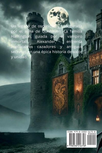 En las brumosas Tierras Altas de Escocia, el antiguo Castillo Dunhaven se erige como un centinela de misterio y poder. La familia Harrington, recién trasladada a esta enigmática fortaleza, pronto descubre su conexión con un oscuro legado. Guiados por el vampiro inmortal Alexander, desentrañan los secretos de los Nocturnos, una antigua orden de vampiros que protegía secretos arcanos que podían alterar el destino de la humanidad. A medida que profundizan en los secretos del castillo, enfrentan implacables cazadores de vampiros, magia oscura y una batalla inminente que pondrá a prueba su valor y unidad. Con la ayuda de un leal golden retriever convertido en guardián vampiro, los Harrington deben proteger su legado y prepararse para una confrontación final que decidirá el futuro de Dunhaven.