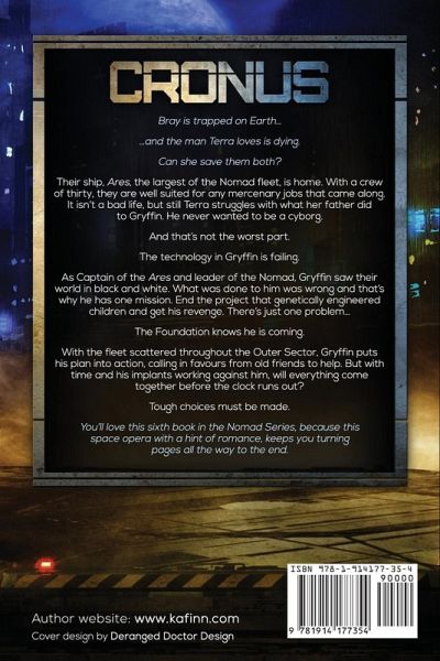 Bray is trapped on Earth... ...and the man Terra loves is dying. Can she save them both? Their ship, Ares, the largest of the Nomad fleet, is home. With a crew of thirty, they are well suited for any mercenary jobs that came along. It isn't a bad life, but still Terra struggles with what her father did to Gryffin. He never wanted to be a cyborg. And that's not the worst part. The technology in Gryffin is failing. As Captain of the Ares and leader of the Nomad, Gryffin saw their world in black and white. What was done to him was wrong and that's why he has one mission. End the project that genetically engineered children and get his revenge. There's just one problem... The Foundation knows he is coming. With the fleet scattered throughout the Outer Sector, Gryffin puts his plan into action, calling in favours from old friends to help. But with time and his implants working against him, will everything come together before the clock runs out? Tough choices must be made.