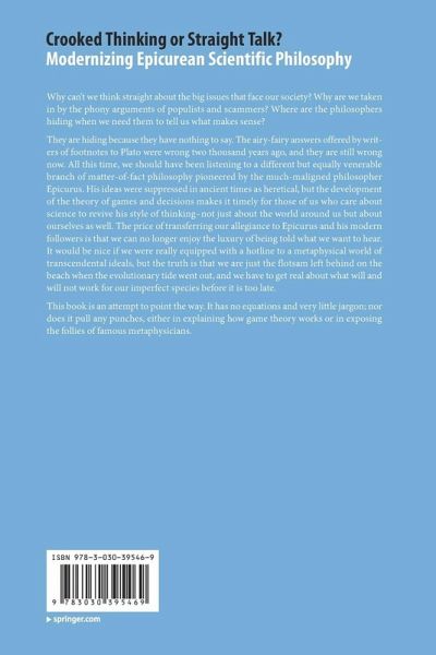 They are hiding because they have nothing to say. The airy-fairy answers offered by writers of footnotes to Plato were wrong two thousand years ago, and they are still wrong now. All this time, we should have been listening to a different but equally venerable branch of matter-of-fact philosophy pioneered by the much-maligned philosopher Epicurus. His ideas were suppressed in ancient times as heretical, but the development of the theory of games and decisions makes it timely for those of us who care about science to revive his style of thinking-not just about the world around us but about ourselves as well. The price of transferring our allegiance to Epicurus and his modern followers is that we can no longer enjoy the luxury of being told what we want to hear. It would be nice if we were really equipped with a hotline to a metaphysical world of transcendental ideals, but the truth is that we are just the flotsam left behind on the beach when the evolutionary tide went out, and we have to get real about what will and will not work for our imperfect species before it is too late.