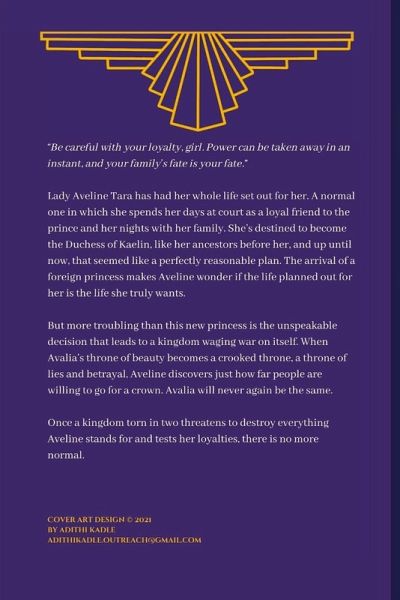 "Be careful with your loyalty, girl. Power can be taken away in an instant, and your family's fate is your fate." Lady Aveline Tara has had her whole life set out for her. A normal one in which she spends her days at court as a loyal friend to the prince and her nights with her family. She's destined to become the Duchess of Kaelin, like her ancestors before her, and up until now, that seemed like a perfectly reasonable plan. The arrival of a foreign princess makes Aveline wonder if the life planned out for her is the life she truly wants. But more troubling than this new princess is the…mehr