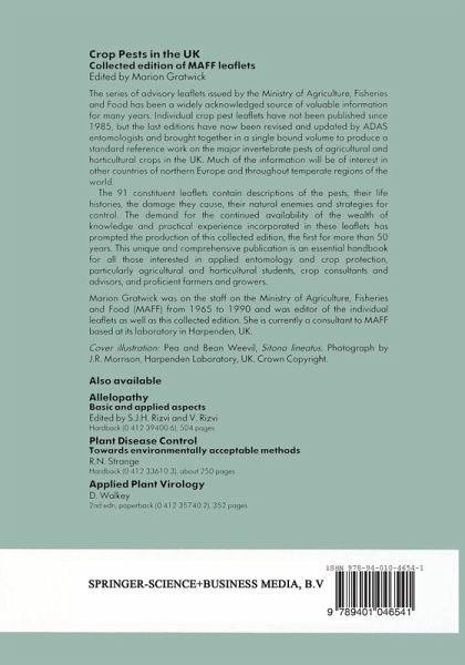 ... this book is warmly welcomed. It puts together a comprehensive body of authoritative factual information which ... could be obtained only by extensive literary research. It will be of value to agriculturalists, conservationists, teachers, advisers, students, pest controllers and all interested in crop-pest problems - Journal of Natural History; ...The book is well produced, well illustrated and strongly bound...This is an essential handbook for all concerned with applied entomology and crop protection especially... - Entomologists Monthly Magazine