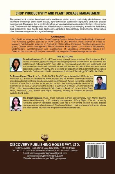 The present book updates the subject matter and issues related to crop productivity, plant disease, plant treatment technology, plant health issues, agro-technology, sustainable agriculture and plant disease management. The book will definitely provide a multidisciplinary forum to explore emerging areas in the field of crop plant productivity, plant health, agro-biodiversity, agriculture biotechnology, environmental conservation, plant disease management and agro-technology.