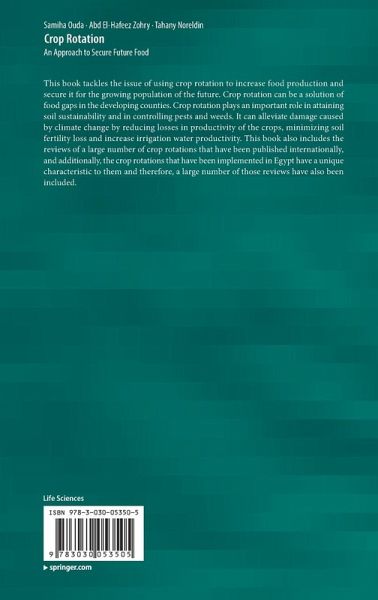 This book tackles the issue of using crop rotation to increase food production and secure it for the growing population of the future. Crop rotation can be a solution of food gaps in the developing counties. Crop rotation plays an important role in attaining soil sustainability and in controlling pests and weeds. It can alleviate damage caused by climate change by reducing losses in productivity of the crops, minimizing soil fertility loss and increase irrigation water productivity. This book also includes the reviews of a large number of crop rotations that have been published internationally, and additionally, the crop rotations that have been implemented in Egypt have a unique characteristic to them and therefore, a large number of those reviews have also been included.