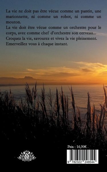 La vie ne doit pas être vécue comme un pantin, une marionnette, ni comme un robot, ni comme un mouton.La vie doit être vécue comme un orchestre pour le corps, avec comme chef d'orchestre son cerveau...Croquez la vie, savourez et vivez la vie pleinement.Emerveillez vous à chaque instant.