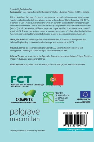 Maria João Rosa is Assistant Professor at the Department of Economics, Management and Industrial Engineering, University of Aveiro, Portugal. She is also a researcher at Centre for Research in Higher Education Policies (CIPES). Her main research topics are quality management and quality assessment in higher education institutions. She is member of CHER and of EAIR's executive committee. Cláudia S. Sarrico is Associate Professor at ISEG Lisbon School of Economics and Management, Universidade de Lisboa, Portugal. She is also a researcher at Centre for Research in Higher Education Policies (CIPES).  Her main research interests are performance measurement and management in higher education.  She is a member of CHER Consortium of Higher Education Researchers and of EAIR The European Higher Education Society's executive committee. Orlanda Tavares is a researcher both at the Agency for Assessment and Accreditation of HigherEducation (A3ES), Portugal, and at The Centre for Research in Higher Education Policies (CIPES), Portugal. She completed her PhD in Educational Research at University of Porto, Portugal. Her main interest areas are policies in higher education and quality assurance/enhancement, students' perceptions on higher education. Alberto Amaral is Professor at the University of Porto, Portugal and a researcher at Centre for Research in Higher Education Policies (CIPES), Portugal. He was the rector of Porto University from 1985 to 1998 and former chair of CHER. He is life-member of IAUP and member of the Board of IMHE/OECD. At present he is the chair of the administration council of the Portuguese Assessment and Accreditation Agency for Higher Education.