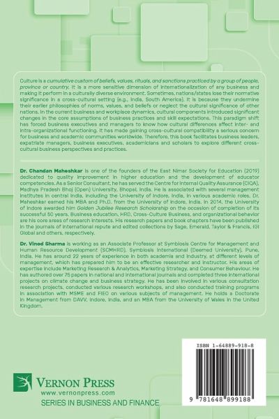 Culture is a 'cumulative custom of beliefs, values, rituals, and sanctions practiced by a group of people, province or country'. It is a more sensitive dimension of internationalization of any business and making it perform in a culturally diverse environment. Sometimes, nations/states lose their normative significance in a cross-cultural setting (e.g., India, South America). It is because they undermine their earlier philosophies of norms, values, and beliefs or neglect the cultural significance of other nations. In the current business and workplace dynamics, cultural components introduced significant changes in the core assumptions of business practices and skill expectations. This paradigm shift has forced business executives and managers to know how cultural differences affect inter- and intra-organizational functioning. It has made gaining cross-cultural compatibility a serious concern for business and academic communities worldwide. Therefore, this book facilitates business leaders, expatriate managers, business executives, academicians and scholars to explore different cross-cultural business perspectives and practices.