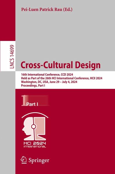 This four-volume set LNCS 14699-14702 constitutes the refereed proceedings of the 16th International Conference on Cross-Cultural Design, CCD 2024, held as part of the 26th International Conference, HCI International 2024, in Washington, DC, USA, during June 29 July 4, 2024.
