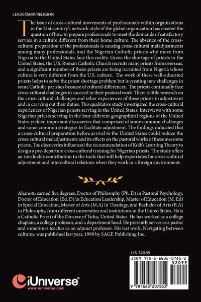 The issue of cross-cultural movements of professionals within organizations in the 21st century's network-style of the global organization has created the question of how to prepare professionals to meet the demands of satisfactory service in a culture different from their home culture. The absence of the cross-cultural preparation of the professionals is causing cross-cultural maladjustments among many professionals, and the Nigerian Catholic priests who move from Nigeria to the United States face this reality. Given the shortage of priests in the United States, the U.S. Roman Catholic Church recruits many priests from overseas, and a significant number of these priests are being recruited from Nigeria whose culture is very different from the U.S. culture. The work of these well-educated priests helps to solve the priest shortage problem but is creating new challenges in some Catholic parishes because of cultural differences. The priests continually face cross-cultural challenges to succeed in their pastoral work. There is little research on the cross-cultural challenges and other experiences of these priests in adjustment and in carrying out their duties. This qualitative study investigated the cross-cultural experiences of Nigerian priests serving in the United States. Interviews with some Nigerian priests serving in the four different geographical regions of the United States yielded important discoveries that comprised of some common challenges and some common strategies to facilitate adjustment. The findings indicated that a cross-cultural preparation before arrival to the United States could reduce the cross-cultural maladjustments and its effects on the pastoral works of these awesome priests. The discoveries influenced the recommendation of Kolb's Learning Theory to design a pre-departure cross-cultural training for Nigerian priests. The study offers an invaluable contribution to the tools that will help expatriates for cross-cultural adjustment and intercultural relations when they work in a foreign environment.