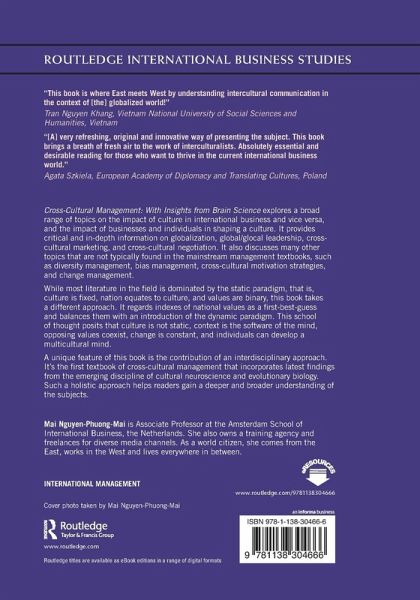 A unique feature of this book is the contribution of an interdisciplinary approach. It's the first textbook of cross-cultural management that incorporates latest findings from the emerging discipline of cultural neuroscience and evolutionary biology in the discussion. Such a holistic approach is meant to help readers gain a deeper and broader understanding of the subjects.