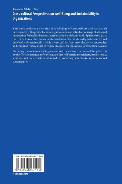 This book explores a new area of psychology of sustainability and sustainable development with specific focus on organizations, and introduces a range of advanced perspectives for healthy business, harmonization and decent work. Split into two parts, the first half presents cross-cultural contributions that study in depth the benefits and drawbacks of sustainability, while the second half discusses theoretical approaches and empirical research that offer new prospects for innovation in prevention science.