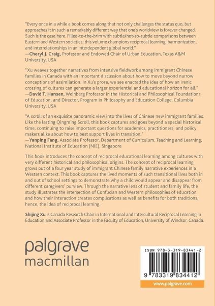 This book introduces the concept of reciprocal educational learning among cultures with very different historical and philosophical origins. The concept of reciprocal learning grows out of a four year study of immigrant Chinese family narrative experiences in a Western context. This book captures the lived moments of such transitional lives both in and out of school settings to demonstrate why a child would appear and disappear from different caregivers' purview. Through the narrative lens of student and family life, the study illustrates the intersection of Confucian and Western philosophies of education and how their interaction creates complications as well as benefits for both traditions, hence, the idea of reciprocal learning.
