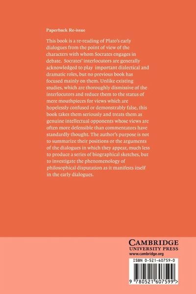 This book is a re-reading of Plato's early dialogues from the point of view of the characters with whom Socrates engages in debate. Socrates' interlocutors are generally acknowledged to play important dialectical and dramatic roles, but no previous book has focused mainly on them. Existing studies are thoroughly dismissive of the interlocutors and reduce them to the status of mere mouthpieces for views which are hopelessly confused or demonstrably false. This book takes interlocutors seriously and treats them as genuine intellectual opponents whose views are often more defensible than commentators have standardly thought. The author's purpose is not to summarise their positions or the arguments of the dialogues in which they appear, much less to produce a series of biographical sketches, but to investigate the phenomenology of philosophical disputation as it manifests itself in the early dialogues.