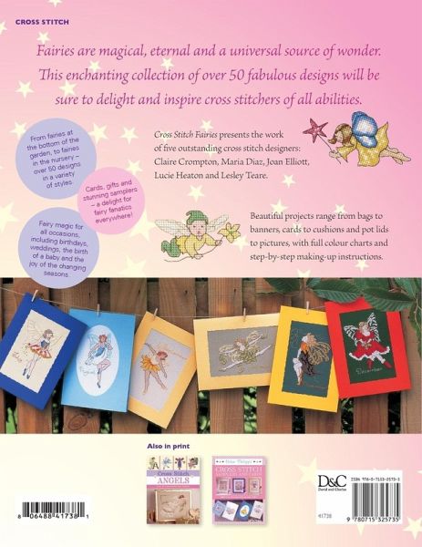 A delight for fairy fanatics--over fifty fabulous designs to enchant cross stitchers everywhere. It has been said that "fairies are not seen by the eyes but by the heart." The popular cross stitch designers invited to contribute their designs to this book have used their imagination to capture the qualities of the wee folk in this magical collection of fairy designs, to delight and inspire stitchers of all abilities. Enchanting project ideas range from bags to banners, cards to cushions and pot lids to pictures, with full color charts and step-by-step instructions.