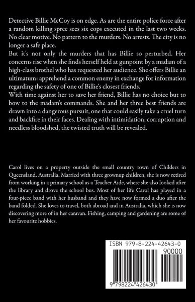 Detective Billie McCoy is on edge. As are the entire police force after a random killing spree sees six cops executed in the last two weeks. No clear motive. No pattern to the murders. No arrests. The city is no longer a safe place. But it's not only the murders that has Billie so perturbed. Her concerns rise when she finds herself held at gunpoint by a madam of a high-class brothel who has requested her audience. She offers Billie an ultimatum: apprehend a common enemy in exchange for information regarding the safety of one of Billie's closest friends. With time against her to save her friend, Billie has no choice but to bow to the madam's commands. She and her three best friends are drawn into a dangerous pursuit, one that could easily take a cruel turn and backfire in their faces. Dealing with intimidation, corruption and needless bloodshed, the twisted truth will be revealed.