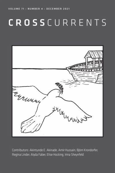 CrossCurrents connects the wisdom of the heart with the life of the mind and the experiences of the body. The journal is operated through its parent organization, the Association for Public Religion and Intellectual Life (APRIL), an interreligious network of academics, activists, artists, and community leaders seeking to engage the many ways religion meets the public. Contributions to the journal exist at the nexus of religion, education, the arts, and social justice. In the December 2021 issue of CrossCurrents: "Not Yet Uhuru: Soundings on the Legacy of James H. Cone and Englebert Mveng for an Africana Liberation Theology" by Akintunde E. Akinade "Muslims in these United States: Living up to the Ideals of the Greatest in the Shadows of Terrorism" by Amir Hussain "Holocaust Memory and Restorative Justice: Competition, Friction, and Convergences" by Bjorn Krondorfer "A Tale of Two Floods: Reflections on Biological Sustainability" by Regina Linder "Court, Four Witnesses" by Alyda Faber Shenila Khoja-Moolji, Sovereign Attachments: Masculinity, Muslimness, and Affective Politics in Pakistan, reviewed by Elise Hocking "Healing Fire at the Met: Terence Blanchard's Fire Shut Up in My Bones and Rashid Johnson's The Broken Nine" reviewed by Irina Sheynfeld "Journeys: Sarah Sze and Rashid Johnson at Storm King Art Center" reviewed by Irina Sheynfeld