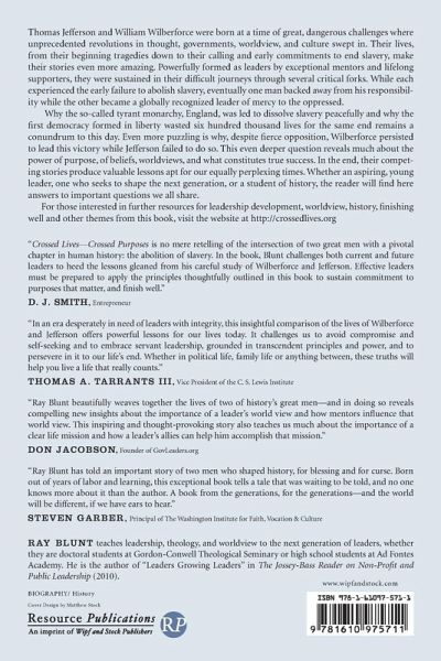 Thomas Jefferson and William Wilberforce were born at a time of great, dangerous challenges where unprecedented revolutions in thought, governments, worldview and culture swept in. Their lives, from their beginning tragedies down to their calling and early commitments to end slavery, make their stories even more amazing. Powerfully formed as leaders by exceptional mentors and lifelong supporters, they were sustained in their difficult journeys through several critical forks. While each experienced the early failure to abolish slavery, eventually one man backed away from his responsibility while the other became a globally recognized leader of mercy to the oppressed. Why the so-called tyrant monarchy, England, was led to dissolve slavery peacefully and why the first democracy formed in liberty wasted six hundred thousand lives for the same end remains a conundrum to this day. Even more puzzling is why, despite fierce opposition, Wilberforce persisted to lead this victory while Jefferson failed to do so. This even deeper question reveals much about the power of purpose, of beliefs, worldviews, and what constitutes true success. In the end, their competing stories produce valuable lessons apt for our equally perplexing times. Whether an aspiring, young leader, one who seeks to shape the next generation, or a student of history, the reader will find here answers to important questions we all share. For those interested in further resources for leadership development, worldview, history, finishing well and other themes from this book, visit the website at http://crossedlives.org
