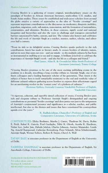 Crossing Borders engages with the emergent field of borders studies, particularly in relation to North America, South Asia, and the transnational spaces they continue to embrace. While multicultural theory tends to emphasize specific and individual cultures, border studies examines the intersection of cultures and the resulting effects.