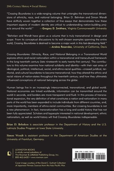 Crossing Boundaries: Ethnicity, Race, and National Belonging in a Transnational World explores ethnic and racial nationalism within a transnational and transcultural framework in the long twentieth century (late nineteenth to early twenty-first century). The contributors to this volume examine how national solidarity and identity-with their vast array of ideological, political, intellectual, social, and ethno-racial qualities-crossed juridical, territorial, and cultural boundaries to become transnational; how they altered the ethnic and racial visions of nation-states throughout the twentieth century; and how they ultimately influenced conceptions of national belonging across the globe. Human beings live in an increasingly interconnected, transnational, global world. National economies are linked worldwide, information can be transmitted around the world in seconds, and borders are more transparent and fluid. In this process of transnational expansion, the very definition of what constitutes a nation and nationalism in many parts of the world has been expanded to include individuals from different countries, and, more importantly, members of ethno-racial communities. But crossing boundaries is not a new phenomenon. In fact, transnationalism has a long and sordid history that has not been fully appreciated. Scholars and laypeople interested in national development, ethnic nationalism, as well as world history will find Crossing Boundaries indispensable.