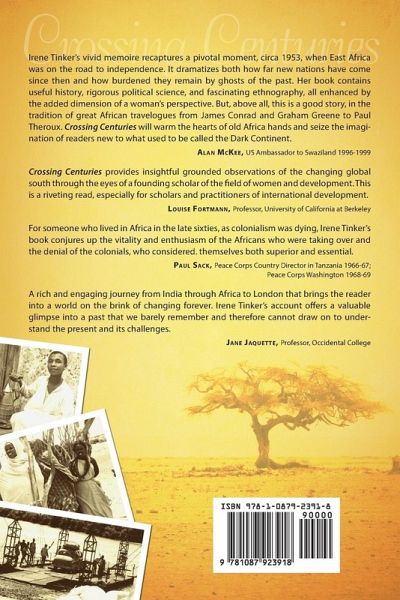 Irene Tinker's vivid memoire recaptures a pivotal moment, circa 1953, when East Africa was on the road to independence. It dramatizes both how far new nations have come since then and how burdened they remain by ghosts of the past. Her book contains useful history, rigorous political science, and fascinating ethnography, all enhanced by the added dimension of a woman's perspective. But, above all, this is a good story, in the tradition of great African travelogues from James Conrad and Graham Greene to Paul Theroux. Crossing Centuries will warm the hearts of old Africa hands and seize the imagination of readers new to what used to be called the Dark Continent.Alan McKee, US Ambassador to Swaziland 1996-1999 Crossing Centuries provides insightful grounded observations of the changing global south through the eyes of a founding scholar of the field of women and development. This is a riveting read, especially for scholars and practitioners of international development.Louise Fortmann, Professor, University of California at Berkeley For someone who lived in Africa in the late sixties, as colonialism was dying, Irene Tinker's book conjures up the vitality and enthusiasm of the Africans who were taking over and the denial of the colonials, who considered. themselves both superior and essential.Paul Sack, Peace Corps Country Director in Tanzania 1966-67; Peace Corps Washington 1968-69 A rich and engaging journey from India through Africa to London that brings the reader into a world on the brink of changing forever. Irene Tinker's account offers a valuable glimpse into a past that we barely remember and therefore cannot draw on to understand the present and its challenges.Jane Jaquette, Professor, Occidental College