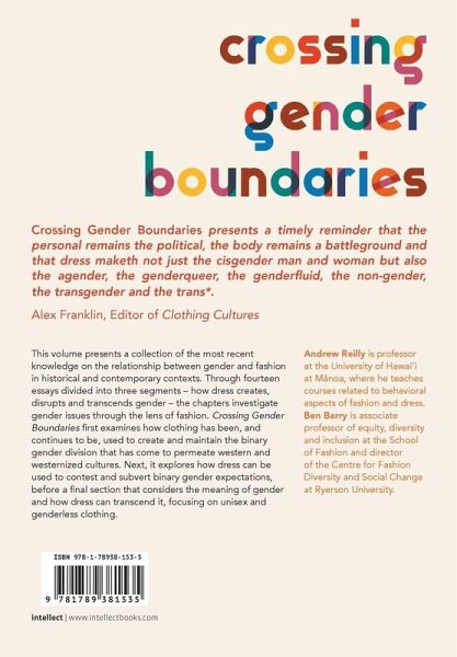 This volume presents a collection of the most recent knowledge on the relationship between gender and fashion in historical and contemporary contexts. Through fourteen essays divided into three segments - how dress creates, disrupts and transcends gender - the chapters investigate gender issues through the lens of fashion. A PDF version of this book is available for free in Open Access: Crossing Gender Boundaries. It has been made available under a Creative Commons Attribution 4.0 International Public Licence and is part of Knowledge Unlatched.