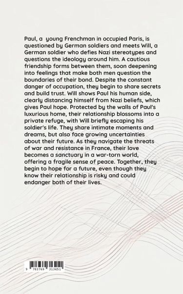 Paul, a young Frenchman in occupied Paris, is questioned by German soldiers and meets Will, a German soldier who defies Nazi stereotypes and questions the ideology around him. A cautious friendship forms between them, soon deepening into feelings that make both men question the boundaries of their bond. Despite the constant danger of occupation, they begin to share secrets and build trust. Will shows Paul his human side, clearly distancing himself from Nazi beliefs, which gives Paul hope. Protected by the walls of Paul's luxurious home, their relationship blossoms into a private refuge, with Will briefly escaping his soldier's life. They share intimate moments and dreams, but also face growing uncertainties about their future. As they navigate the threats of war and resistance in France, their love becomes a sanctuary in a war-torn world, offering a fragile sense of peace. Together, they begin to hope for a future, even though they know their relationship is risky and could endanger both of their lives. Paul, ein junger Franzose, lebt im besetzten Paris und wird von deutschen Soldaten befragt. Dabei lernt er Will kennen, einen deutschen Soldaten, der sich von den stereotypen Nazi-Bildern unterscheidet und die herrschende Ideologie kritisch sieht. Zwischen ihnen entwickelt sich eine vorsichtige Freundschaft, die bald von tiefer werdenden Gefühlen geprägt ist. Trotz der Bedrohung durch die Besatzung und das Risiko für beide beginnen Will und Paul, Geheimnisse zu teilen und einander zu vertrauen. Will zeigt Paul die menschliche Seite hinter der Uniform und distanziert sich klar von der Nazi-Ideologie, was Paul Hoffnung gibt. Im Schutz von Pauls luxuriösem Anwesen erleben die beiden eine Art Flucht und bauen ihre Beziehung weiter auf, wobei sie zunehmend zärtliche Momente teilen. Doch die Gefahren der Besatzung und des Widerstands in Frankreich stellen sie vor immer grössere Herausforderungen. Ihre Liebe wird zu einem Zufluchtsort in der kriegsgeprägten Welt, und sie träumen von einer gemeinsamen Zukunft, auch wenn sie wissen, dass ihre Beziehung hochriskant ist und ihr Leben bedrohen könnte.