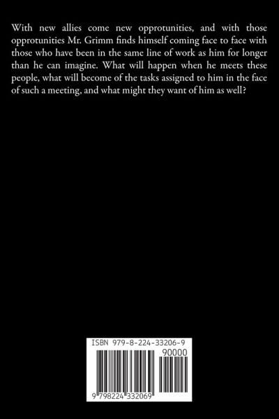 With new allies come new opprotunities, and with those opprotunities Mr. Grimm finds himself coming face to face with those who have been in the same line of work as him for longer than he can imagine. What will happen when he meets these people, what will become of the tasks assigned to him in th eface of such a meeting, and what might they want of him as well?