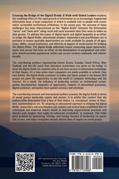 Crossing the Bridge of the Digital Divide: A Walk with Global Leaders explores the combined effect of the rapid growth of information as an increasingly fragmented information base, a large component of which is available only to people with money and/or acceptable institutional affiliations. In the recent past, the outcome of these challenges has been characterized as the "digital divide" between the information "haves" and "have nots" along racial and socio economic lines that seem to widen as time passes. To address the issues of digital equity and digital inequality in an effort to bridge the digital divide, educational scholars, researchers and practitioners are in positions to ensure equitable opportunities are made available for people of all ages, races, ability, sexual orientation, and ethnicity in support of social justice for bridging the digital divide. The digital divide addresses issues concerning equal opportunity, equity and access that have an effect on the development of marginalized and otherwise disenfranchised populations within and across systems nationally and internationally. The contributing authors- representing Unites States, Canada, South Africa, New Zealand, and the UK - posit that education institutions can serve as the bridge to close the digital divide for students who do not have access to information technology in their homes. At a time when more computers are made available in schools than ever before, the digital divide continues to widen and fewer people in the lowest SES groups are given the opportunity to join the world of computer technology and the internet. As a result, the influence of leadership activity on institutional racism, gender discrimination, inequality of opportunity, inequity of educational processes, digital exclusion, and justice have gained currency and attention. The contributing national and international authors examine the digital divide in terms of social justice leadership, equity and access. It is within this context that the authors offer discussions from a lens of their choice, i.e. conceptual, review of literature, epistemological, etc. By adopting an educational approach to bridging the digital divide, researchers and practitioners can connect and extend long-established lines of conceptual and empirical inquiry aimed at improving organizational practices and thereby gain insights that might be otherwise overlooked, or assumed. This holds great promise for generating, refining, and testing theories of leadership for equity and access, and helps strengthen already vibrant lines of inquiry on social justice.