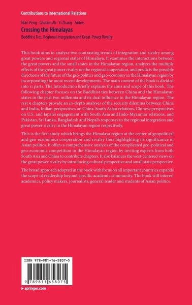 This book aims to analyze two contrasting trends of integration and rivalry among great powers and regional states of Himalaya. It examines the interactions between the great powers and the small states in the Himalayan region, analyzes the multiple effects of the great power rivalry on the regional cooperation, and predicts the possible directions of the future of the geo-politics and geo-economy in the Himalayan region by incorporating the most recent developments. The main content of the book is divided into 11 parts. The Introduction briefly explains the aims and scope of this book. The following chapter focuses on the Buddhist ties between China and the Himalayan states in the past two millennia and its dual influence in the Himalayan region. The rest 9 chapters provide an in-depth analyses of the security dilemma between China and India, Indian perspectives on China-South Asian relations, Chinese perspectives on U.S. and Japan's engagement with South Asia and Indo-Myanmar relations, and Pakistan, Sri Lanka, Bangladesh and Nepal's responses to the regional integration and great power rivalry in the Himalayan region respectively. This is the first study which brings the Himalaya region at the center of geopolitical and geo-economics cooperation and rivalry thus highlighting its significance in Asian politics. It offers a comprehensive analysis of the complicated geo-political and geo-economic competition in the Himalayan region by inviting experts from both South Asia and China to contribute chapters. It also balances the west-centered views on the great power rivalry by introducing cultural perspective and small state perspective. The broad approach adopted in the book with focus on all important countries expands the scope of readership beyond specific academic community. The book will interest academics, policy makers, journalists, general reader and students of Asian politics.