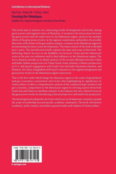 This book aims to analyze two contrasting trends of integration and rivalry among great powers and regional states of Himalaya. It examines the interactions between the great powers and the small states in the Himalayan region, analyzes the multiple effects of the great power rivalry on the regional cooperation, and predicts the possible directions of the future of the geo-politics and geo-economy in the Himalayan region by incorporating the most recent developments. The main content of the book is divided into 11 parts. The Introduction briefly explains the aims and scope of this book. The following chapter focuses on the Buddhist ties between China and the Himalayan states in the past two millennia and its dual influence in the Himalayan region. The rest 9 chapters provide an in-depth analyses of the security dilemma between China and India, Indian perspectives on China-South Asian relations, Chinese perspectives on U.S. and Japan's engagement with South Asia and Indo-Myanmar relations, and Pakistan, Sri Lanka, Bangladesh and Nepal's responses to the regional integration and great power rivalry in the Himalayan region respectively. This is the first study which brings the Himalaya region at the center of geopolitical and geo-economics cooperation and rivalry thus highlighting its significance in Asian politics. It offers a comprehensive analysis of the complicated geo-political and geo-economic competition in the Himalayan region by inviting experts from both South Asia and China to contribute chapters. It also balances the west-centered views on the great power rivalry by introducing cultural perspective and small state perspective. The broad approach adopted in the book with focus on all important countries expands the scope of readership beyond specific academic community. The book will interest academics, policy makers, journalists, general reader and students of Asian politics.