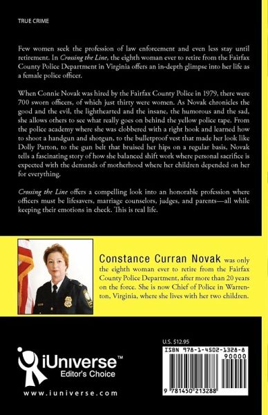 Few women seek the profession of law enforcement and even less stay until retirement. In Crossing the Line, the eighth woman ever to retire from the Fairfax County Police Department in Virginia offers an in-depth glimpse into her life as a female police officer. When Connie Novak was hired by the Fairfax County Police in 1979, there were 700 sworn officers, of which just thirty were women. As Novak chronicles the good and the evil, the lighthearted and the insane, the humorous and the sad, she allows others to see what really goes on behind the yellow police tape. From boot camp where she was clobbered with a right hook and learned how to shoot a handgun and shotgun, to the bulletproof vest that made her look like Dolly Parton, to the gun belt that bruised her hips on a regular basis, Novak tells a fascinating story of how she balanced a shift-based career where personal sacrifice is expected with the demands of motherhood where little people depended on her for everything. Crossing the Line offers a compelling look into an honorable profession where officers must be lifesavers, marriage counselors, judges, and parents-all while keeping their emotions in check. This is real life.