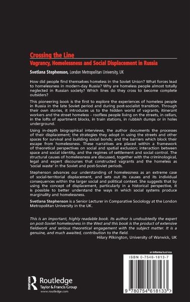This pioneering book is the first to explore the experiences of homeless people in Russia in the late Soviet period and during post-socialist transition. By using in-depth interviews, Svetlana Stephenson places the narratives within the framework of theoretical perspectives on social-spatial exclusion and advances the understanding of homelessness in Russia as an extreme case of social-territorial displacement.