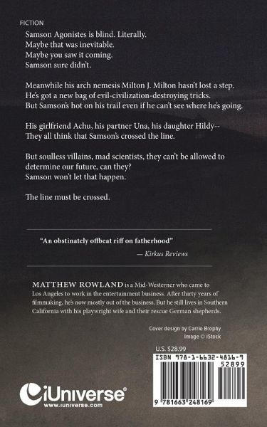 For the third time, Samson Agonistes is in over his head. And as if things couldn't be worse, this time he's blind. Literally, as in, if you-don't-stop-that, blind. Meanwhile his arch nemesis Milton J. Milton hasn't lost a step. He's got a new bag of evil-civilization-destroying tricks. But Samson's hot on his trail even if he can't see where he's going. His girlfriend Achu, his partner Una, and his daughter Hildy, all think that Samson's crossed the line. But soulless villains, mad scientists, they can't be allowed to determine our future, can they? Samson won't let that happen. The line must be crossed.